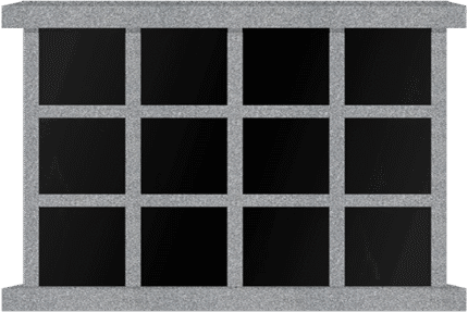 * 12 Niche Horizontal Columbarium 4-6×1-6×3-7 China Grey Walls/Jet Black Doors; 1 Sided, 4×3 Niches Includes Rosettes & Keys CFS-L-SY-406
