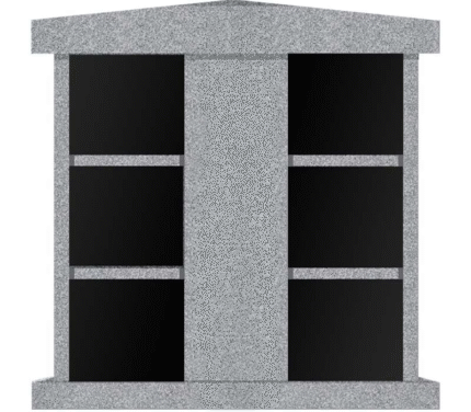 48 Niche 2 Side Columbarium 6-7×2-7×4-11 New Imperial Grey HorizontalJet Black Doors; 2 Sided, 6×4 Niches CFS-L-029-1 ; Includes Rosettes, Key & 4 Extra Niche Doors