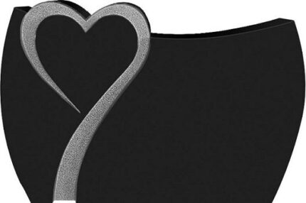 Design 33628 As Shown 4-0x0-6×2-4 AP Jet Black custom shape curved die w/ heart U-Sunk pebbled border around heart as shown, on front only