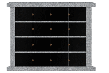 48 Niche 2 Side Columbarium 6-7×2-7×4-11 New Imperial Grey HorizontalJet Black Doors; 2 Sided, 6×4 Niches CFS-L-029-1 ; Includes Rosettes, Key & 4 Extra Niche Doors